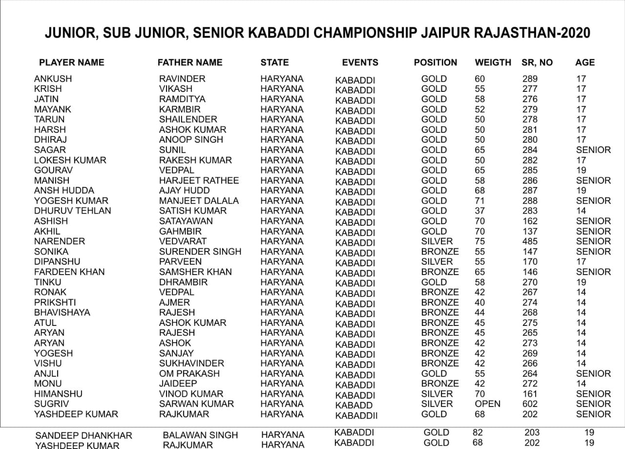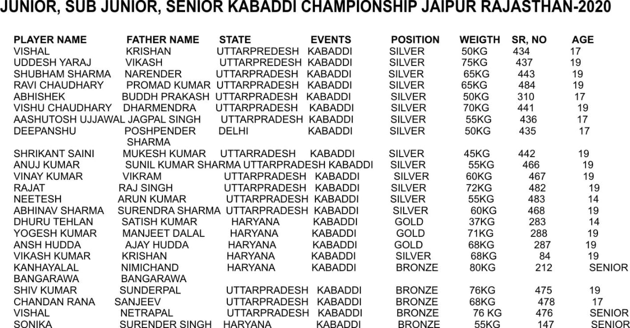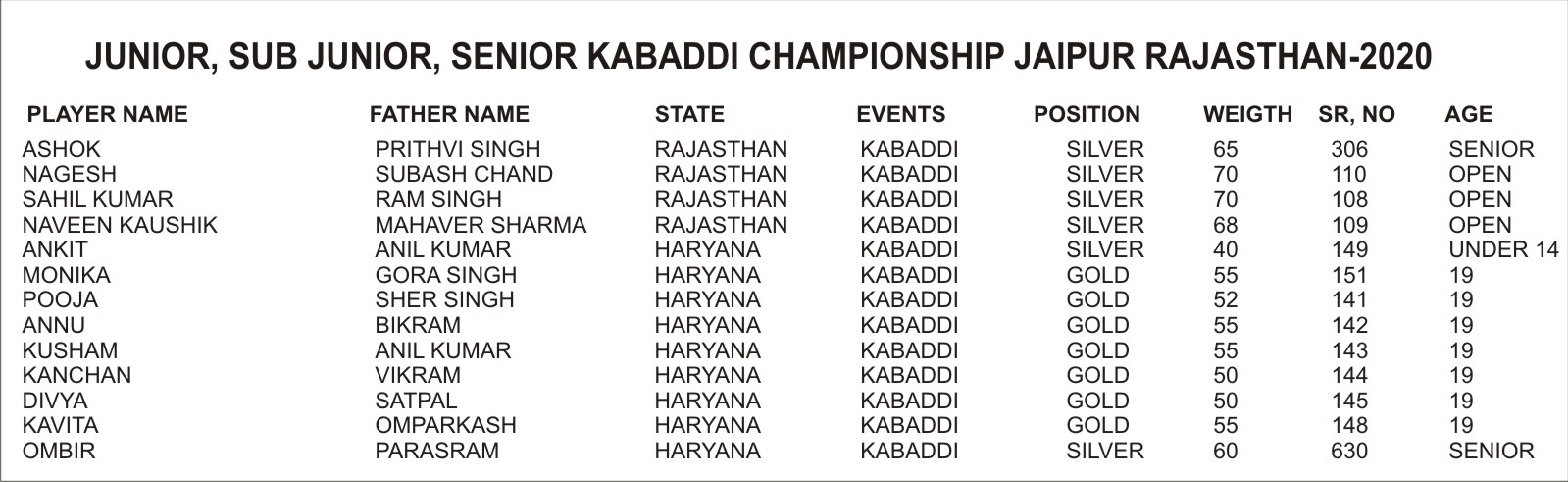 10-12-2020 >> Junior, Sub Junior Senior Kabaddi Championship Jaipur Rajasthan 2020