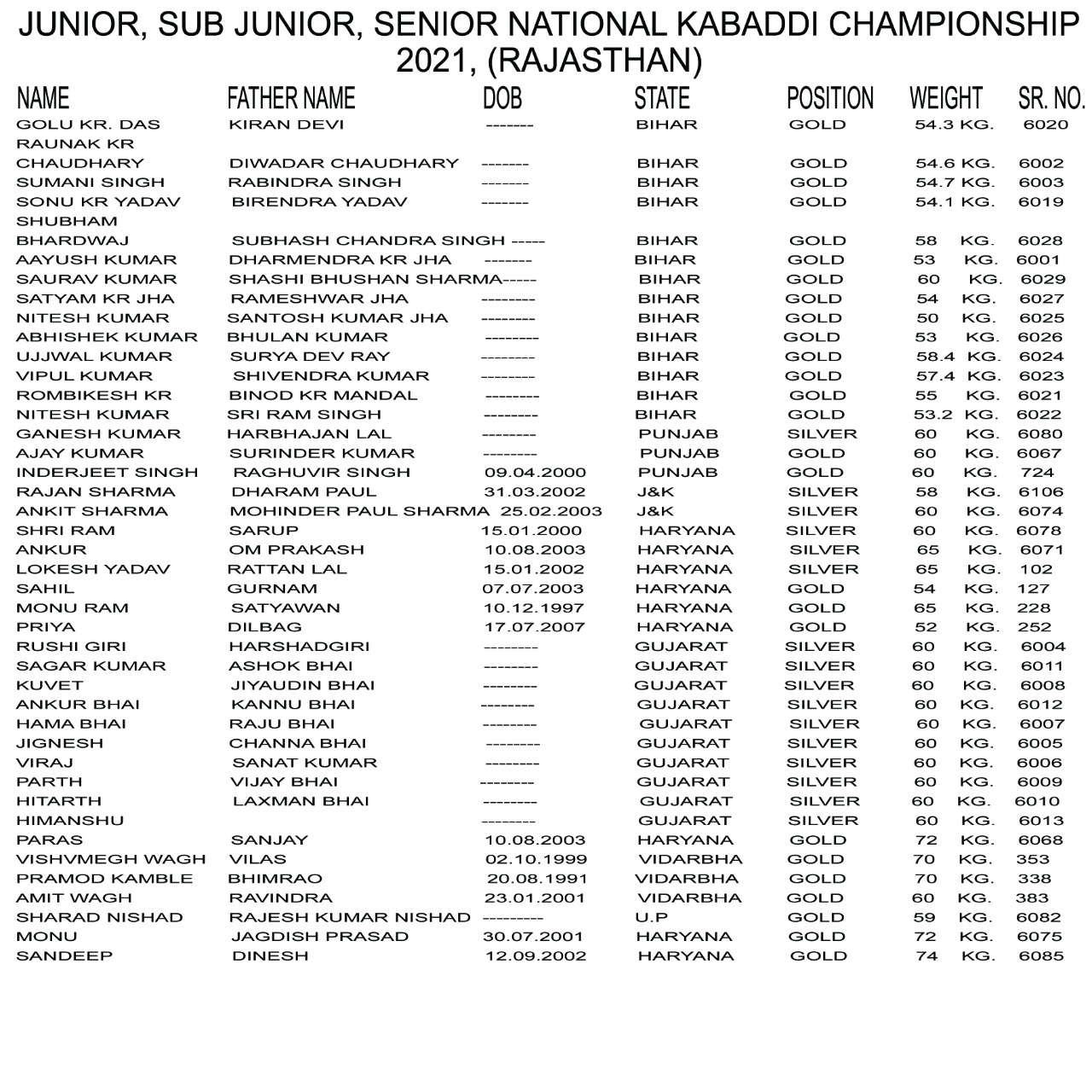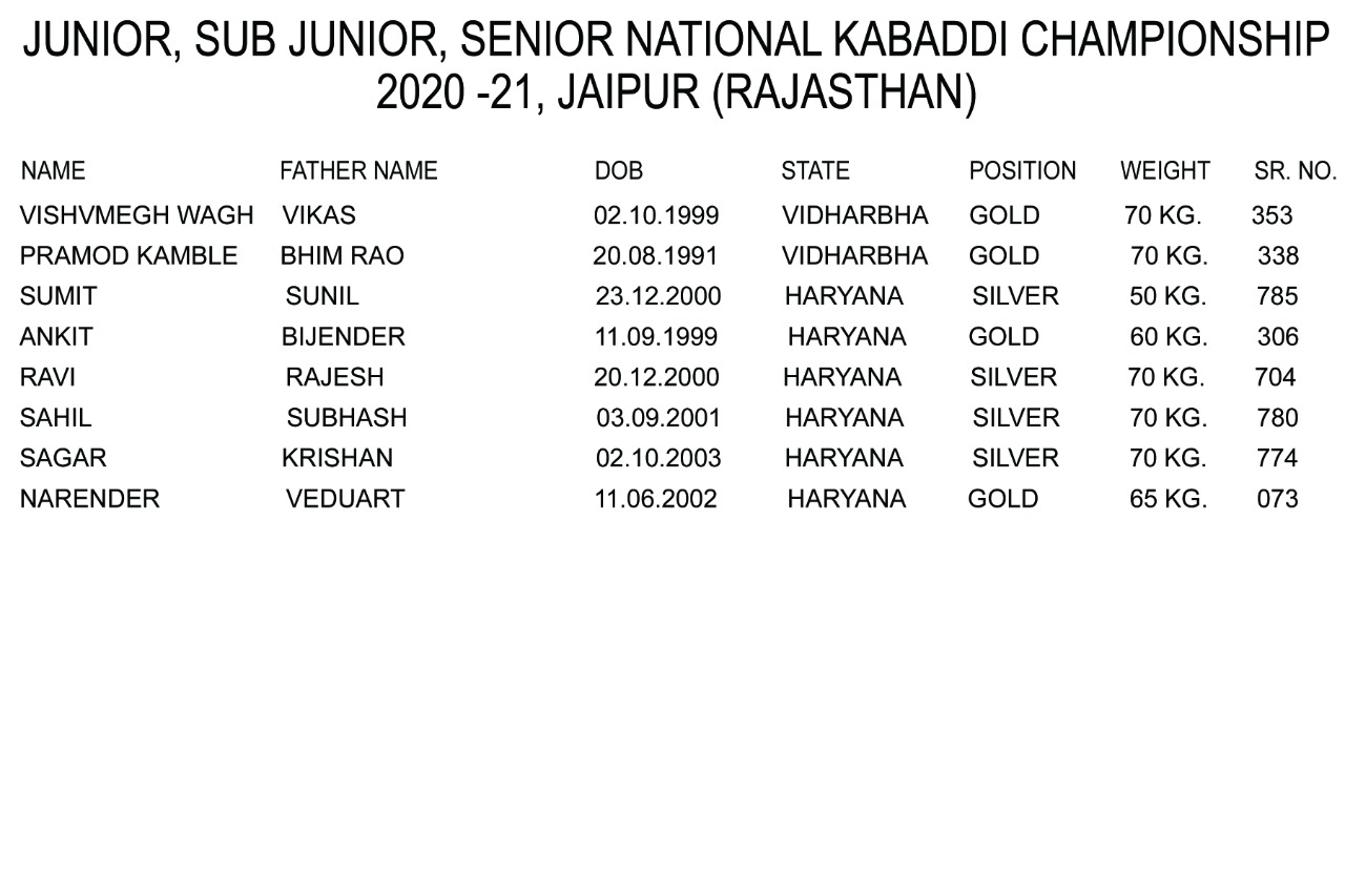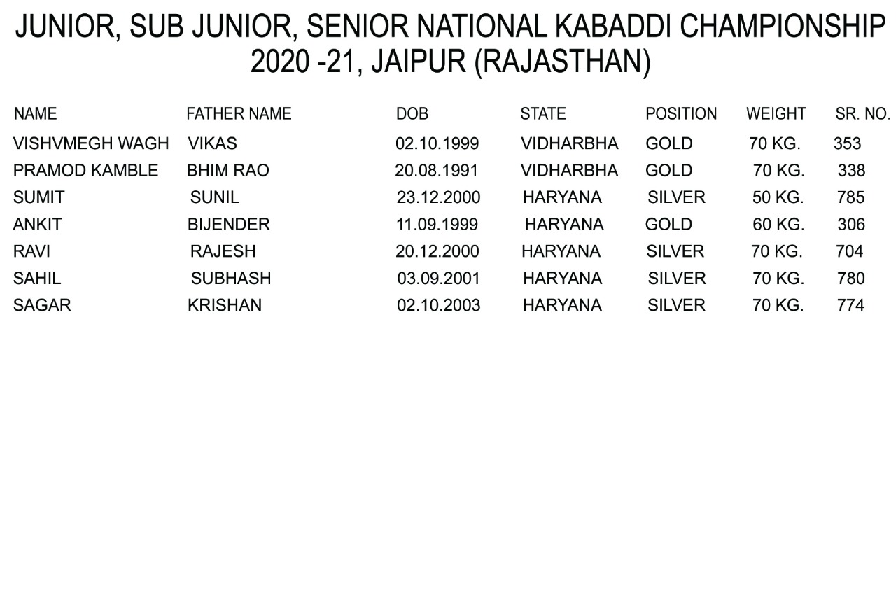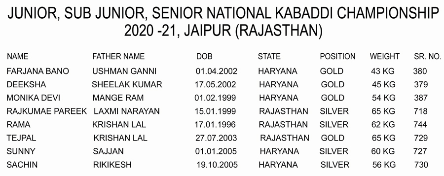 30-12-2021 >> Junior, Sub Junior , Senior National Kabaddi Championship 2020-21 Jaipur Rajasthan