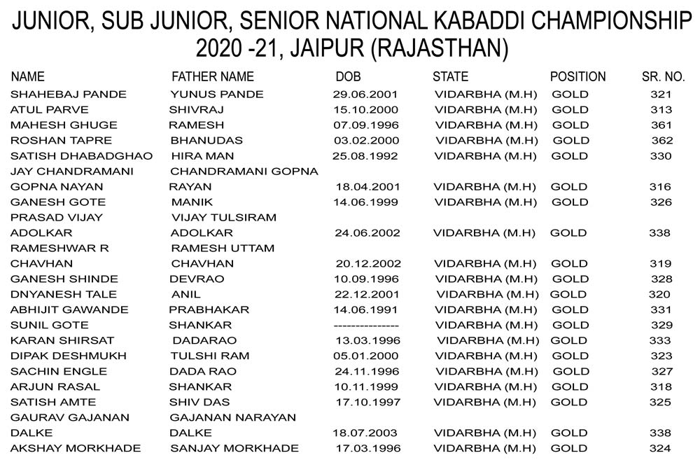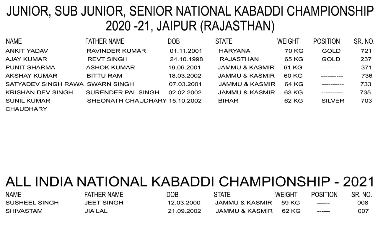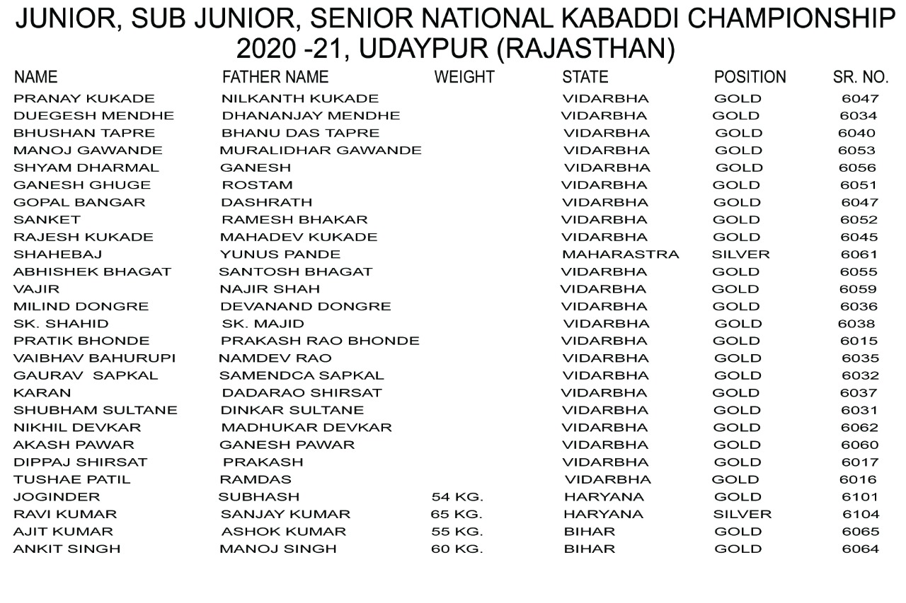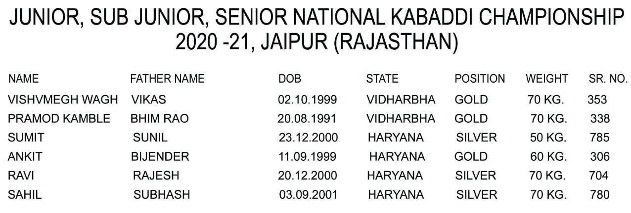 30-12-2021 >> Junior, Sub Junior , Senior National Kabaddi Championship 2020-21 Jaipur Rajasthan