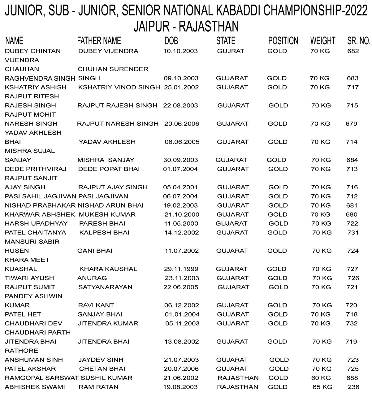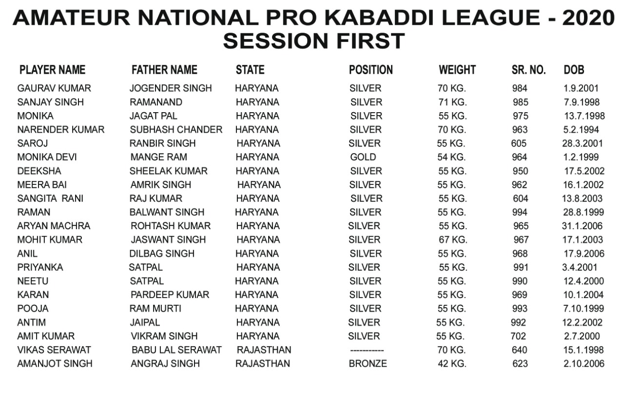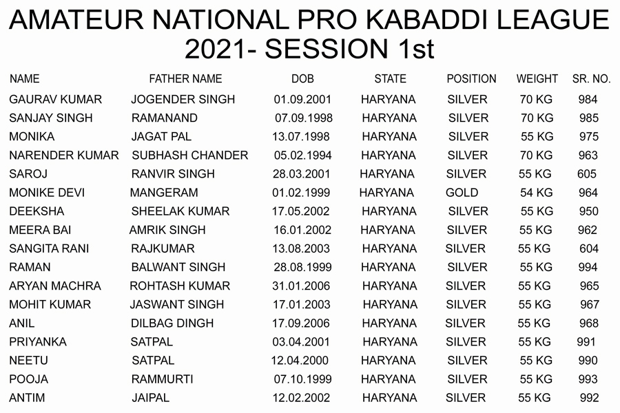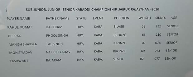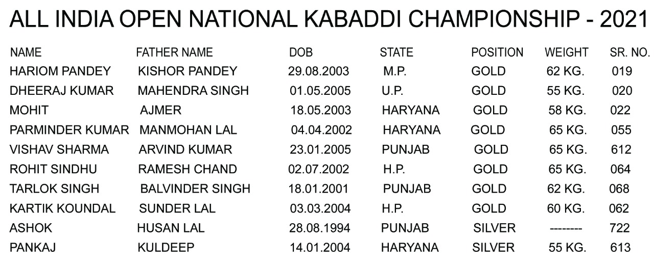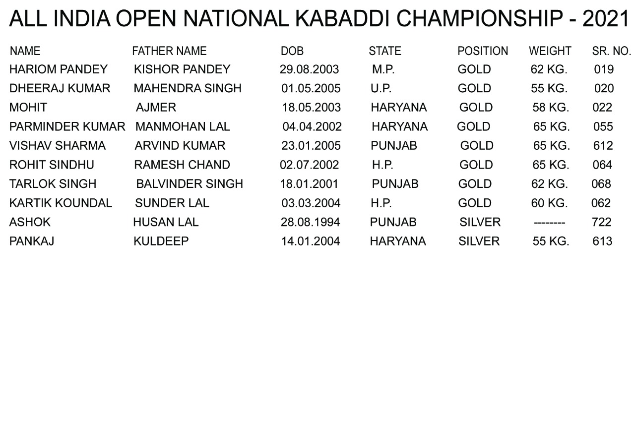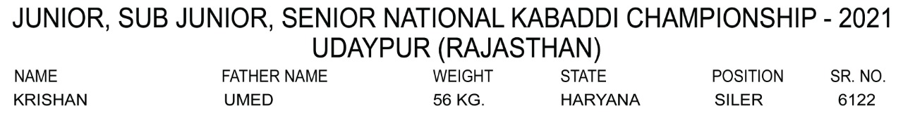 22-11-2023 >>Amateur Youth Kabaddi Federation Of India, Raj Singh S/O Prem Singh