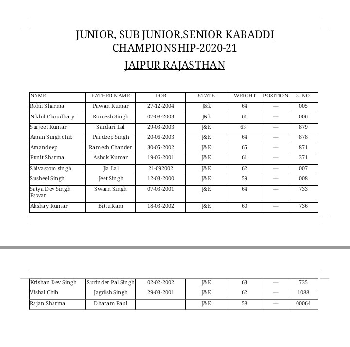 8-03-2025 >>Amateur Youth Kabaddi Federation Of India, Mr. Rohan S/O Mr. Ajay Kumar 19-10-2024