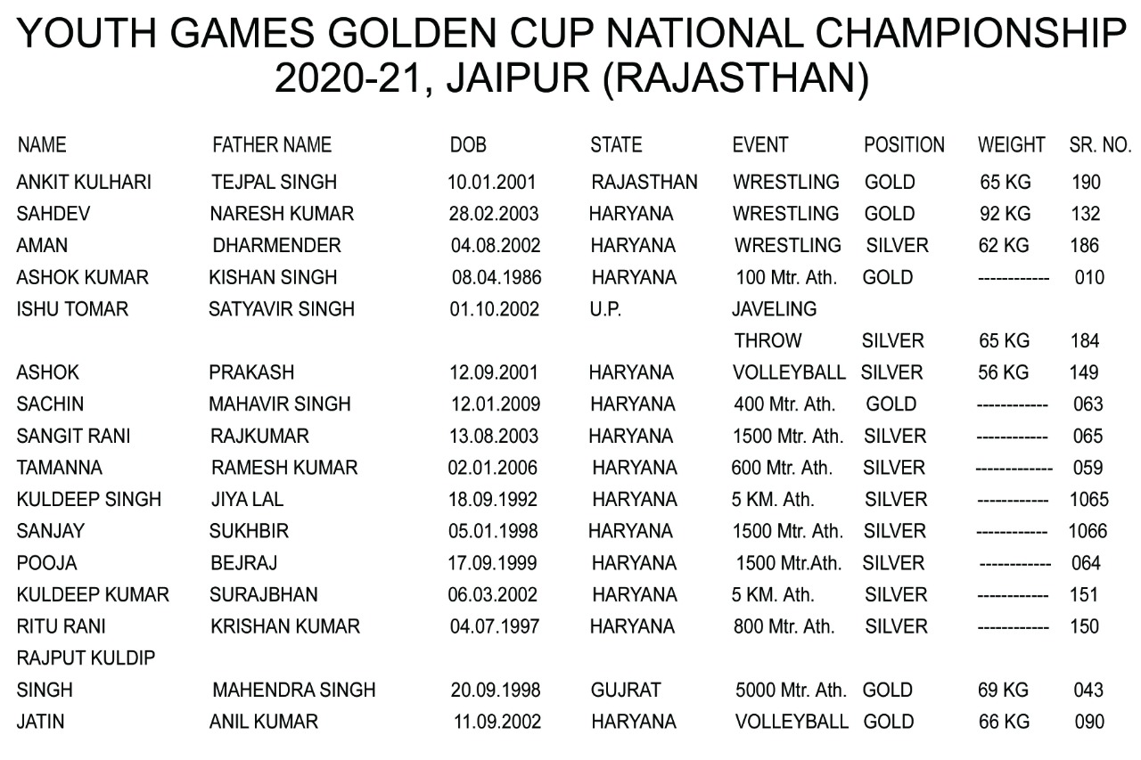 22-03-2021 >> Youth Games Golden Cup National Championship 2020-21 Jaipur Rajasthan