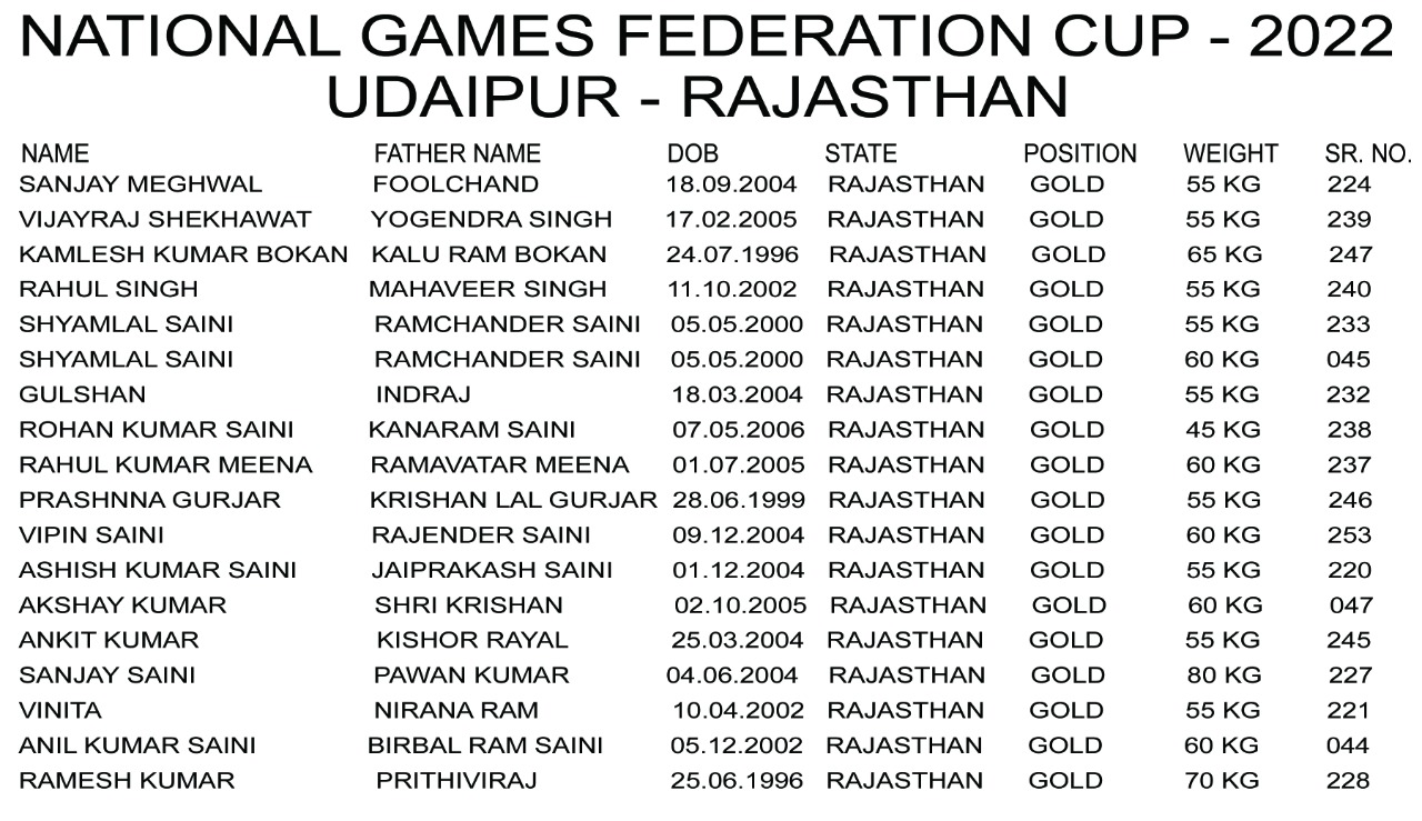 3-03-2022 >>National Games Federation Cup 2022 Udaipur - Rajasthan