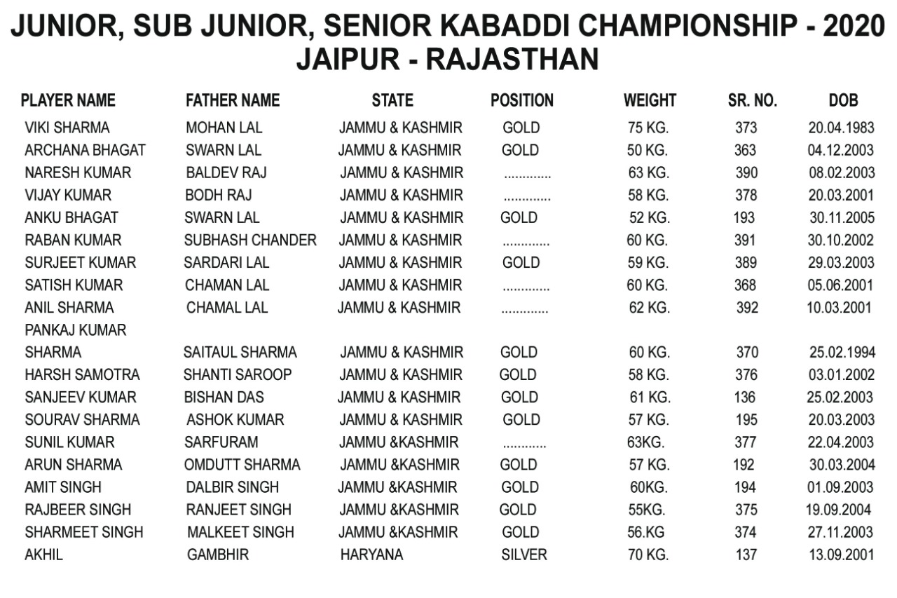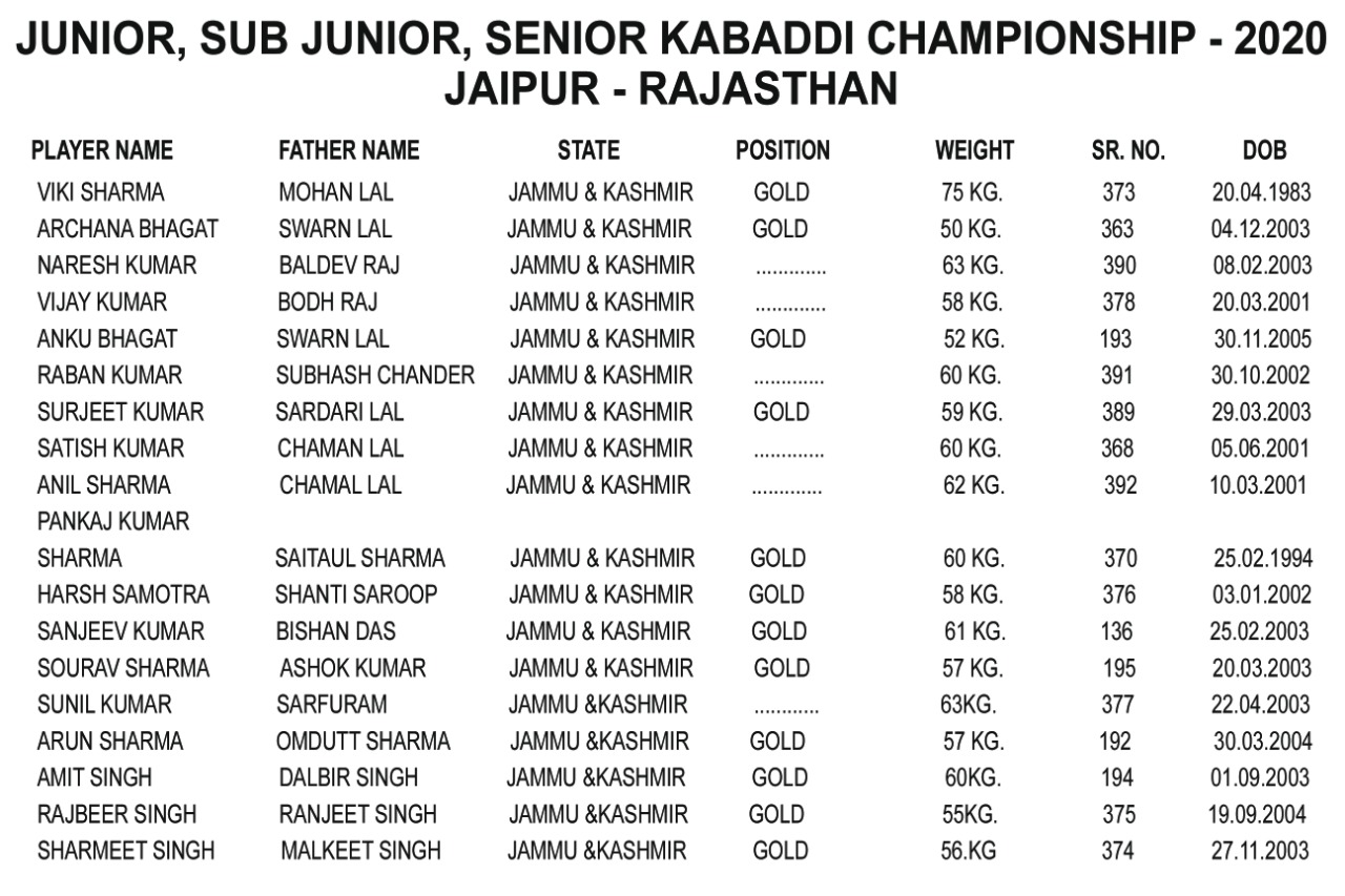 21-01-2021 >> Junior, Sub Junior Senior Kabaddi Championship 2020 Jaipur Rajasthan
